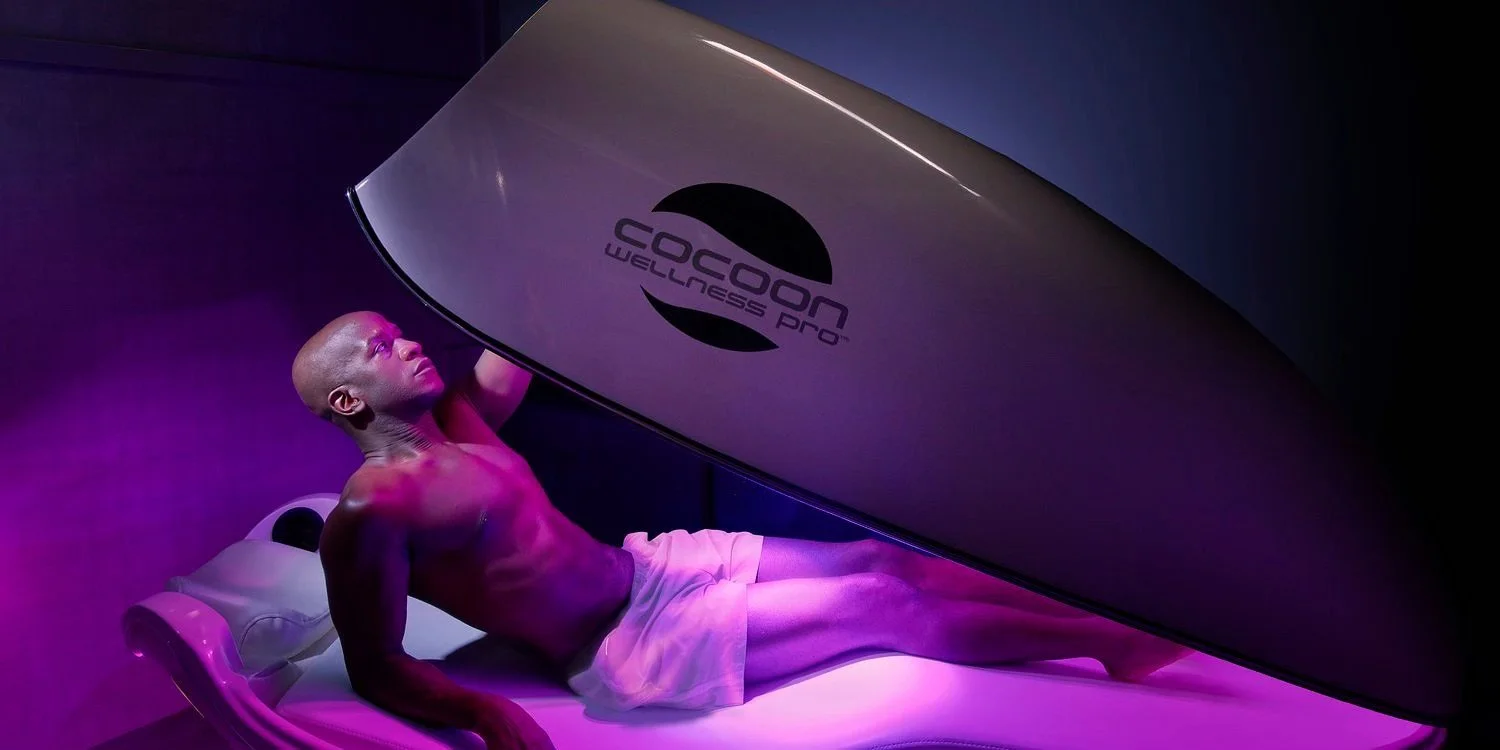 A spa capsule with infrared light, radiant heat, steam therapy, vibrating massage, and liquid vitamins that rehydrate your body, detoxifies your lymphatic system, and more.